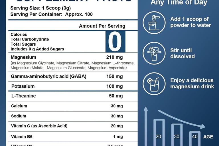 • 500 mg of magnesium glycinate for enhanced absorption and a milder effect on the stomach.